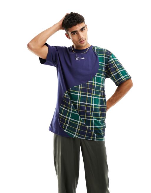 Karl Kani - Oversized T-shirt in blauw met golvende vlakken met Schotse ruit
