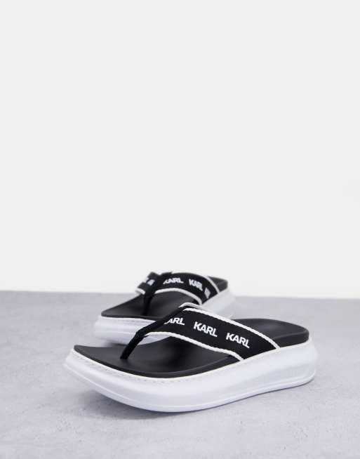 Karl Lagerfeld - Kapri - Teenslippers met logobandje en platte plateauzool in zwart