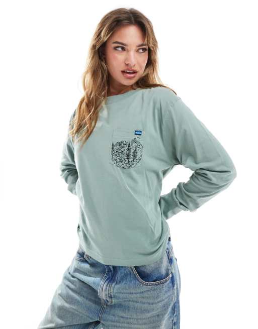 Kavu - Westray - T-shirt met lange mouwen en grafische print in lichtgroen