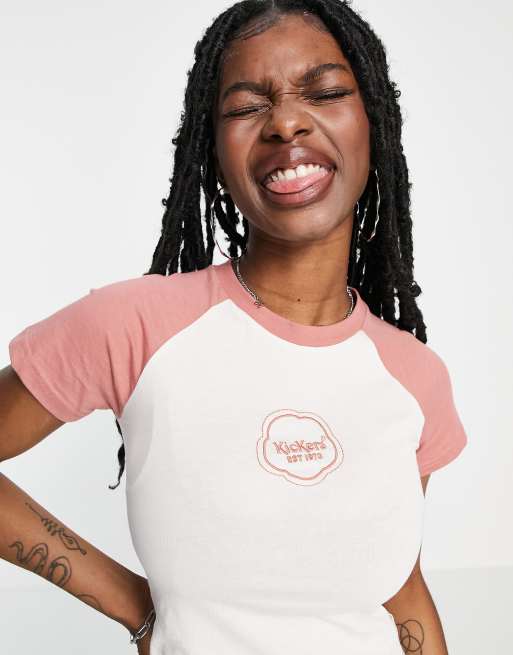 Kickers - Cropped T-shirt met raglanmouwen en retro logo op de voorkant