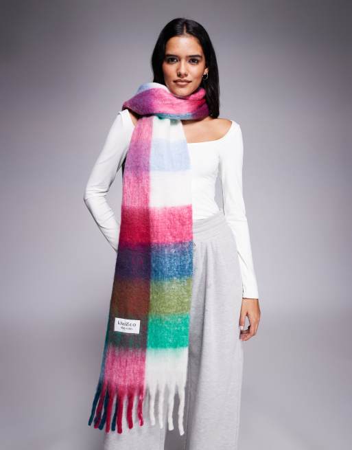 Kiwi & Co - Sugar Check - Geborstelde oversized sjaal met kwastjes en ruiten in multi