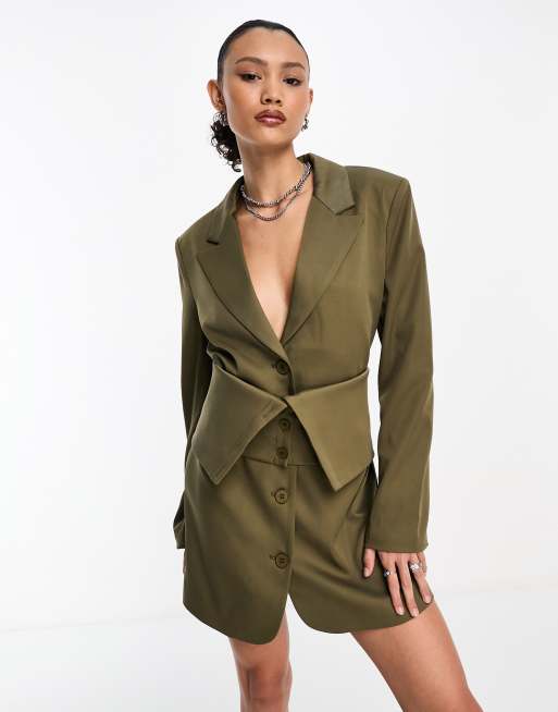 Kyo The Brand - Elegante mini blazerjurk met afneembaar omgevouwen riemdetail in kaki
