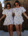 Labelrail x Collyer Twins - Mini-jurk met pofmouwen, geweven gestrikte taille en zeepaardprint in wit