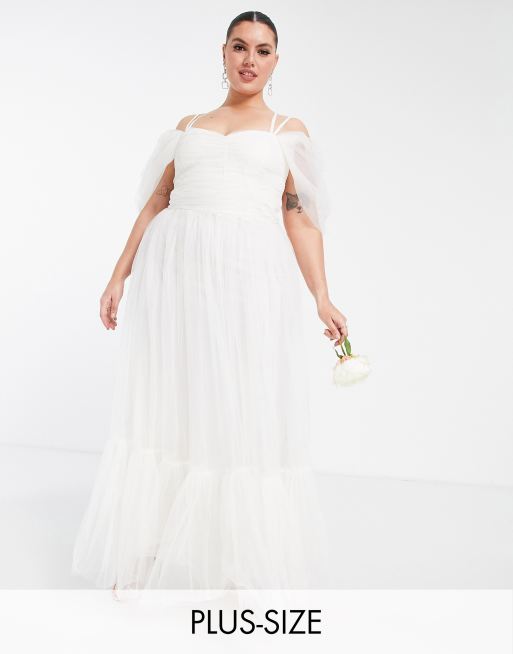 Lace & Beads Plus - Bruidskleding - Maxi-jurk met gekruiste rugbandjes en tule in ivoor