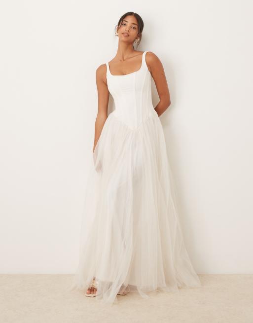 Lace & Beads - Maxi korsetjurk met verlaagde zoom in ivoorwit