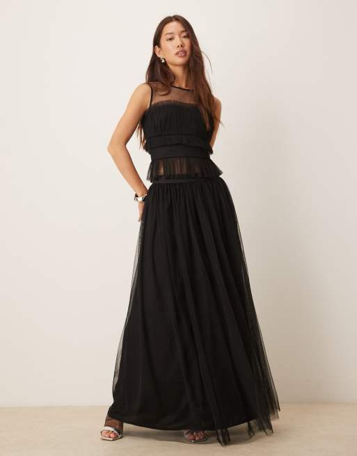Lace & Beads - Maxi rok van tule in zwart, deel van co-ord set