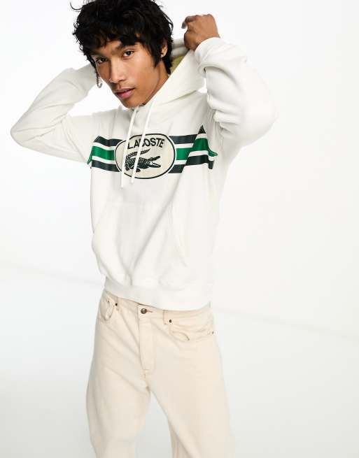 Lacoste - Hoodie met print op de voorkant in gebroken wit