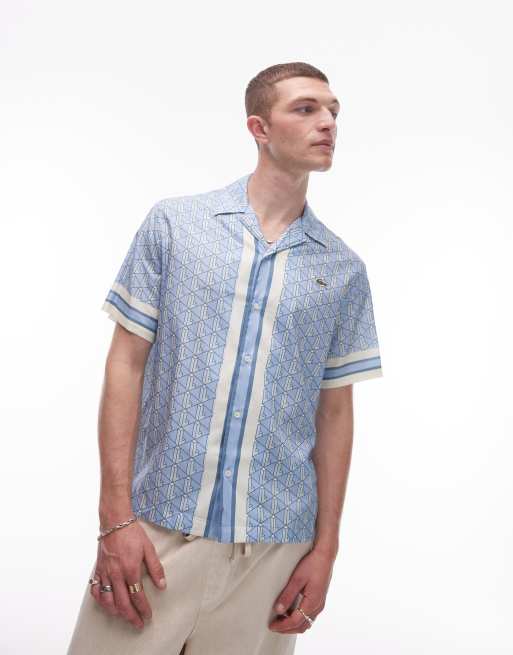 Lacoste - Overhemd met korte mouwen en reverskraag in blauw met witte monogramprint