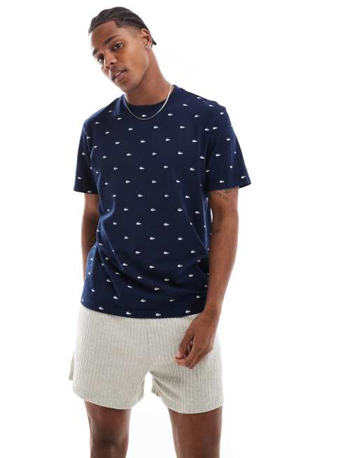 Lacoste - Pyjama-T-shirt met monogramlogo in marineblauw