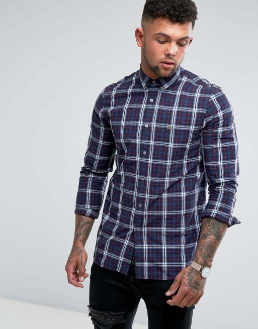 Lacoste - Regular-fit geruit overhemd in marineblauw