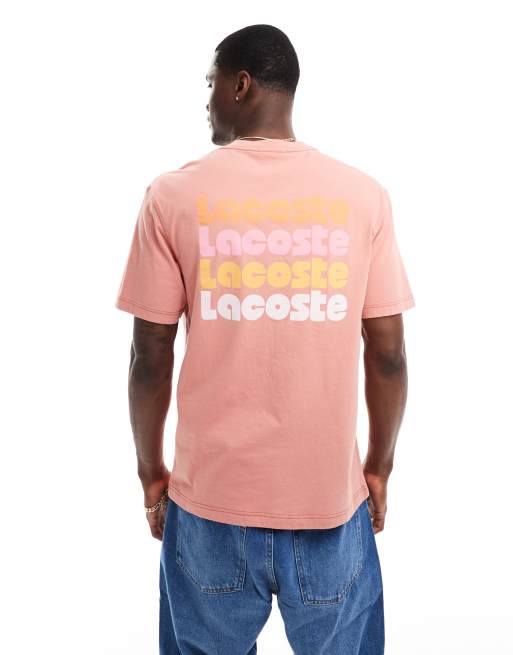Lacoste - T-shirt met korte mouwen en print op de achterkant in rood met wassing