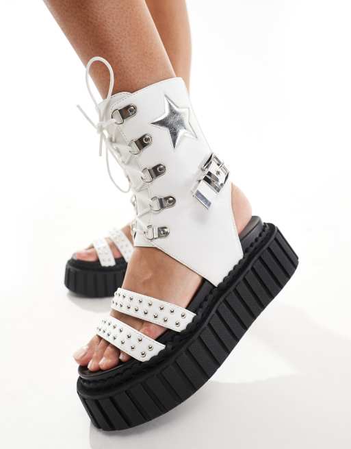 Lamoda - Haunting - Sandalen met veters en ster in wit
