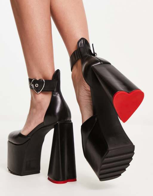 Lamoda - Rodeo - Schoenen met hak, plateau en hartvormige gesp in zwart