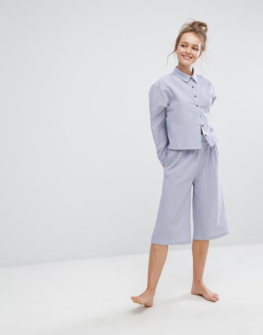 Lazy Days - Denim blauw geweven pyjamaset