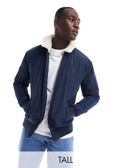 Le Breve Tall - Pilotenjack met borgkraag in marineblauw