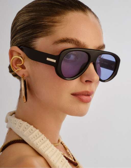 Le Specs - Dreamboat - Zonnebril in zwart met blauwe glazen