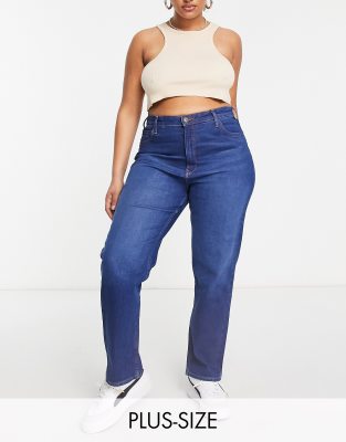 Lee - Plus - Mom jeans met hoge taille in middenblauw met wassing