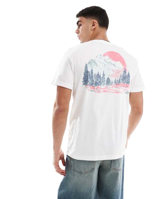 Lee - Ruimvallend T-shirt met bergprint op de achterkant in gebroken wit