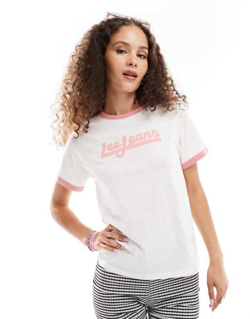Lee - T-shirt met een gekleurd randje in wit en roze