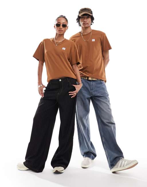 Lee - Workwear Label - Unisex ruimvallend T-shirt met logo in bruin