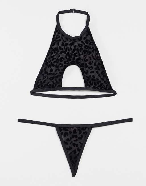 Leg Avenue - Lingerieset met uitsnijding en luipaardprint in zwart