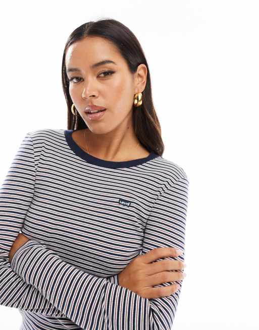 Levi' - Gestreept T-shirt met lange mouwen en klein vleermuislogo in marineblauw