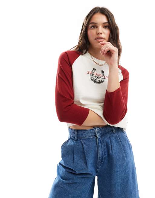 Levi's - Baseball T-shirt met lange mouwen en hoefijzerlogo in crème