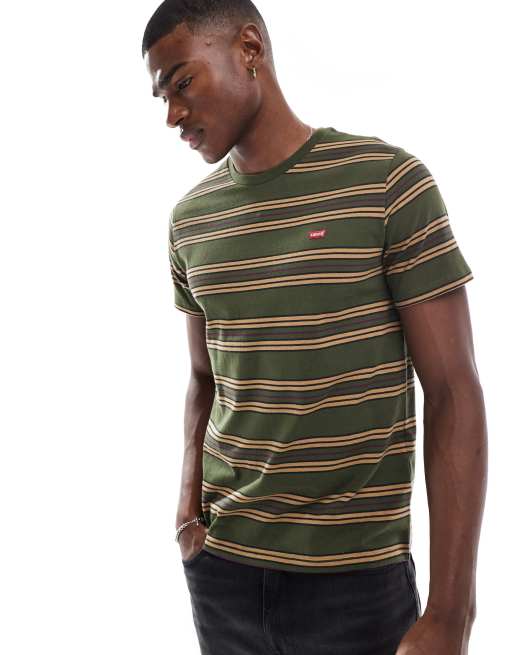 Levi's - Gestreept T-shirt met origineel vleermuislogo in donkergroen