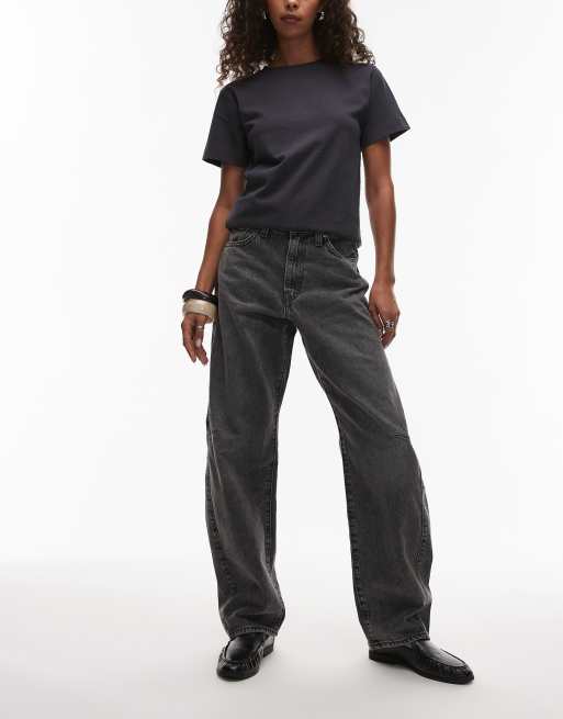 Levi's - Jeans met wijde ronde pijpen en riempjes in zwart met wassing