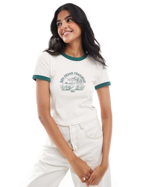 Levi's - Mini T-shirt met 'Red Cedar Trailhead'-print en gekleurde biezen in crème