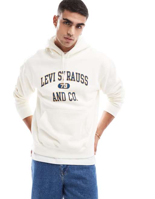 Levi's - Ruimvallende hoodie met varsity logo in crème