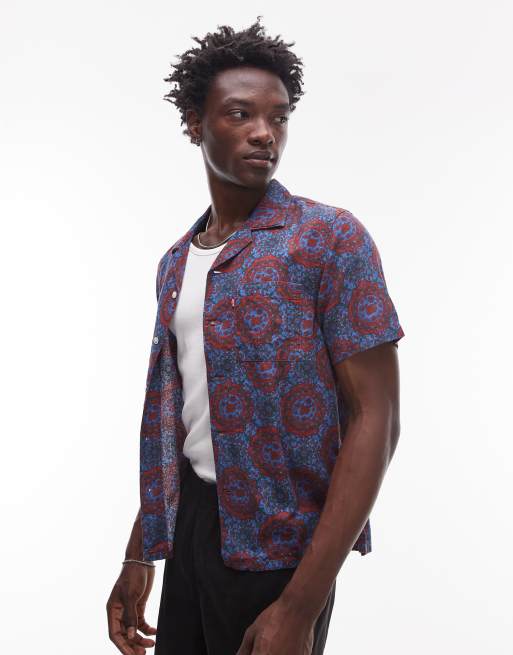 Levi's - Sunset camp - Overhemd met korte mouwen en geoprint in bordeauxrood
