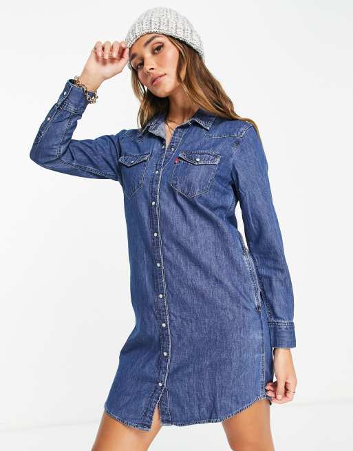 Levi's - The Ultimate - Denim western overhemdjurk in middenblauw