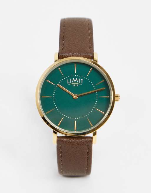 Limit - Horloge van imitatieleer in bruin met groene wijzerplaat