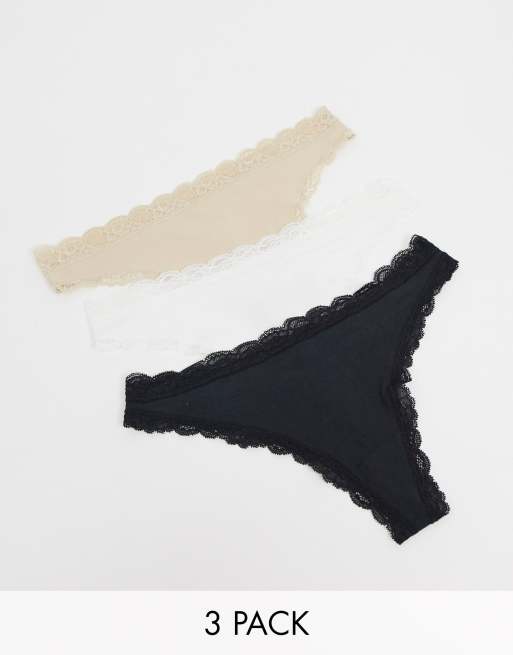 Lindex - Emelie - Set van 3 tanga's met kanten zoom van katoen - MULTI