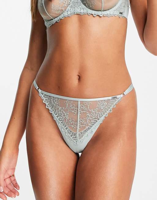 Lindex - Luna - String van mesh en kant in zacht saliegroen