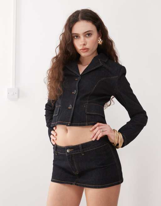 Lioness - Cropped jack met knoopjes voor van denim met donkere wassing, deel van co-ord set