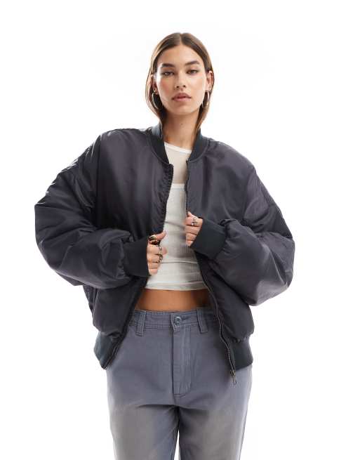Lioness - Oversized gewatteerd bomberjack met rits in antraciet