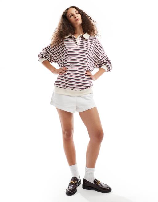 Lioness - Rugbytop van jersey met kraagje in crème met veelkleurige strepen