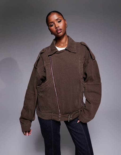 Liquor N Poker - Bikerjack met rits in chocoladebruin