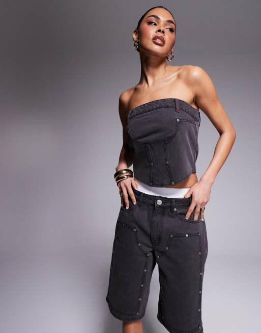 Liquor N Poker - Denim bandeau utility korset in zwarte wassing