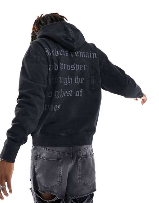Liquor N Poker - Oversized hoodie in grijs met acid wash