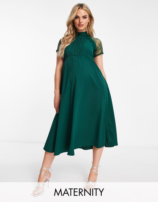 Liquorish - Zwangerschapskleding - Midi jurk met A-lijn in smaragdgroen