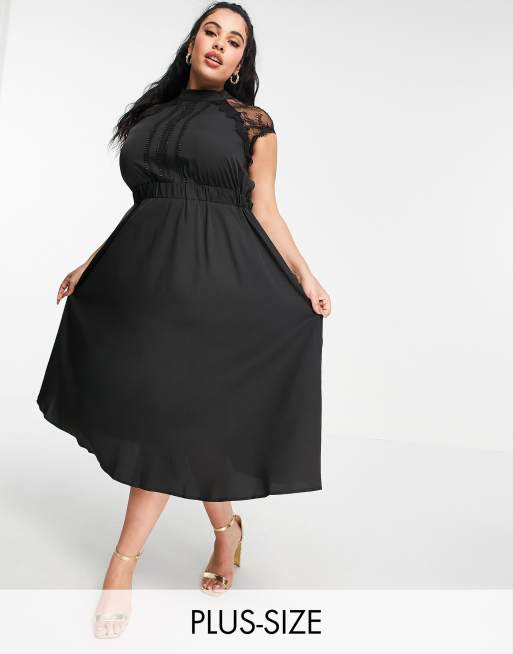 Liquorish Curve - Midi-jurk met A-lijn in zwart