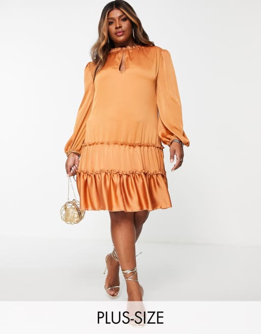 Little Mistress Plus - Gelaagde mini-jurk in camel
