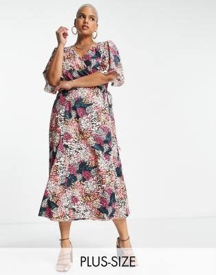 Little Mistress Plus - Lange midi jurk met fladdermouwen en fijne bloemenprint