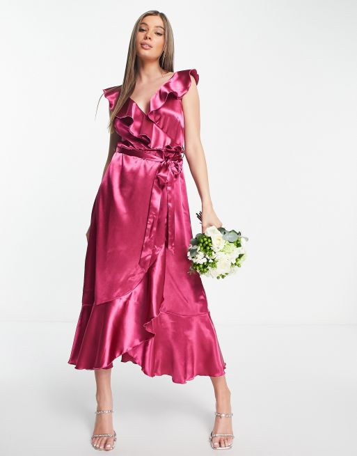 Little Mistress - Wikkeljurk met ruches in fuchsia roze