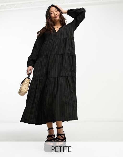 Lola May Petite - Maxi jurk met knopen aan de voorkant en stroken in zwart