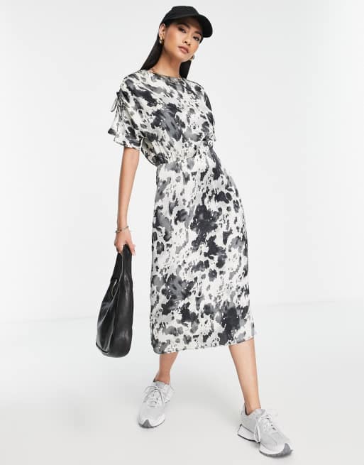 Lola May - Satijnen jurk met ronde hals en koeienprint
