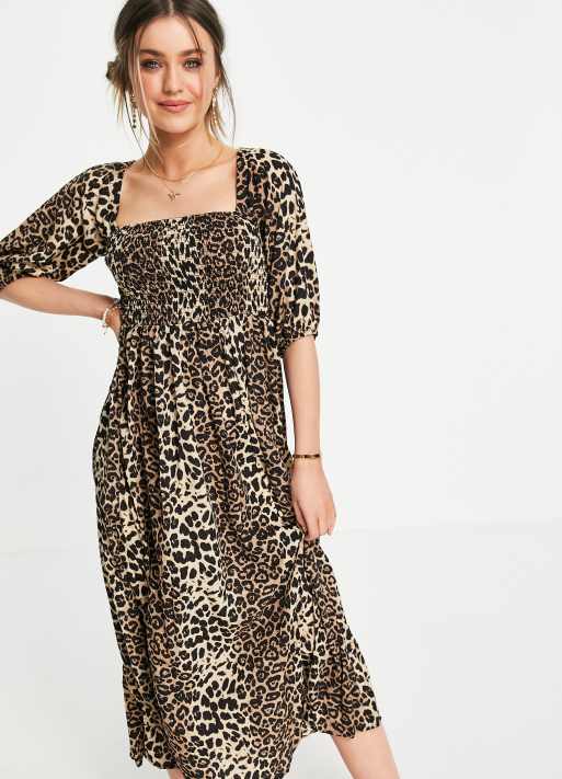 Lola May - Smockjurk met gesmokte voorkant, gestrikte hals en luipaardprint